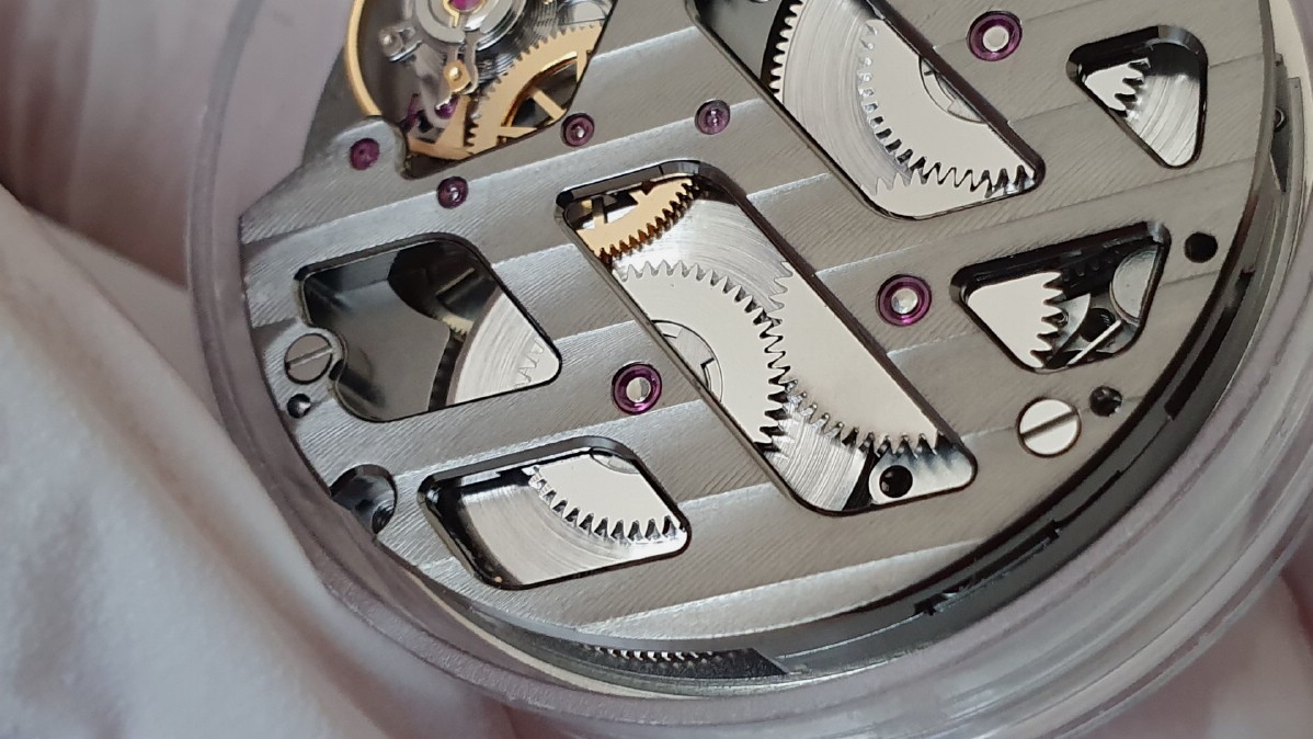 - « Notre système d’heure sautante, développé par notre partenaire, bénéficie d’une conception récente, le saut se fait sans embrayage préalable du disque d’heure et sans oscillations perceptibles. Et surtout, vous l’entendez sauter, ce qui vous fait une complication sonore en prime. »
